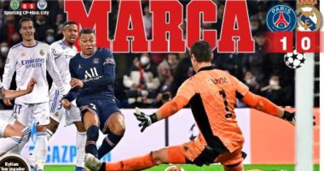 ألقت الصحف الرياضية الصادرة صباح اليوم الأربعاء الضوء على هزيمة ريال مدريد أمام باريس سان جيرمان بنتيجة 0-1 فى المباراة التى جمعت الطرفين أمس الثلاثاء، على ملعب "حديقة الأمراء"، ضمن منافسات ذهاب دور الـ16 ببطولة دورى أبطال أوروبا.