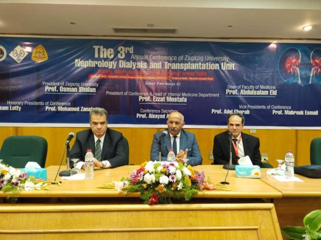 تحت رعاية الدكتور عثمان شعلان رئيس جامعة الزقازيق ، افتتح الأستاذ الدكتور عاطف حسين نائب رئيس الجامعة لشئون التعليم والطلاب فعاليات المؤتمر الثالث لوحدة الكلى ( الغسيل الكلوى وزراعة الكلى )، بحضور الأستاذ الدكتور عبد السلام عيد عميد كلية الطب ورئيس مجلس إدارة المستشفيات والأستاذ الدكتور يحيى زكريا عميد كلية الطب الأسبق ومدير برنامج زرع الأعضاء، والأستاذ الدكتور خالد صفوت أستاذ الجراحة ونقيب أطباء الشرقية ، والأستاذ الدكتور وليد ندا المدير التنفيذي للمستشفيات، الأستاذة الدكتورة أمل عطا وكيل كلية الطب، والأستاذ الدكتور عزت مصطفى رئيس المؤتمر ورئيس قسم الباطنة، ورؤساء شرف المؤتمر الأستاذ الدكتور محمد الزناتى والأستاذ الدكتور عصام لطفى وعدد من السادة أعضاء هيئة التدريس بوحدة الكلى بجامعة الزقازيق والجامعات المصرية ووزارة الصحة.