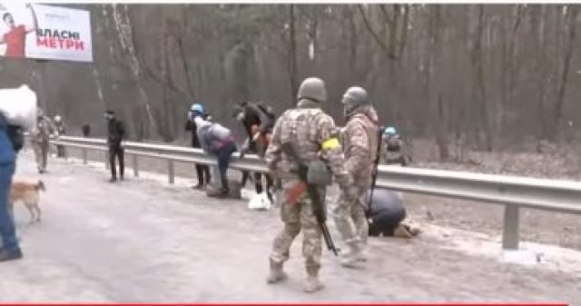 الجيش الأوكرانى يساعد مدنيين فى الهروب من قصف روسى على أربين بضواحى كييف