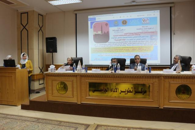 وقدم الدكتور محمد الالفي مدير مركز تطوير الأداء الجامعي عرض عن الخدمات التي يقدمها المركز بوحداته المختلفة وكذلك الشراكات التي قام بها مؤخرا مع جهات مختلفة سوف تكون الشراكة مع المركز الثقافي الفرنسي إضافة جديدة لها.