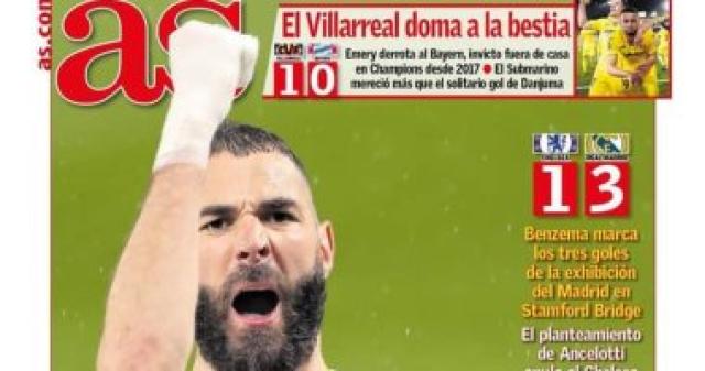 فيما علقت صحيفة "آس" الإسبانية، قائلة "ملك أوروبا، بنزيما يسجل الأهداف الثلاثة خلال عرض ريال مدريد في ستامفورد بريدج، نهج أنشيلوتي يُضعف تشيلسي".