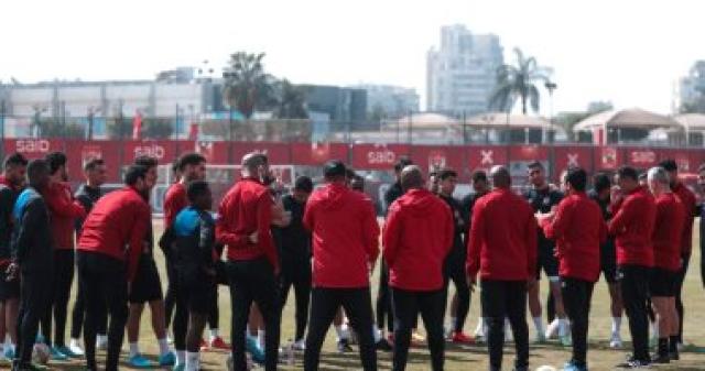 جلسة خاصة بين موسيماني ومعاونيه على هامش مران الأهلي قبل رحلة المغرب