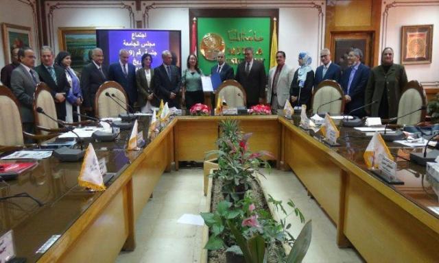 جاء ذلك خلال انعقاد مجلس الجامعة بحضور الدكتور عصام الدين صادق فرحات نائب رئيس الجامعة لشئون التعليم والطلاب وعمداء الكليات ومدير مركز ضمان الجودة والاعتماد والمدير التنفيذي للمعلومات والمستشار القانوني وأمين عام الجامعة.