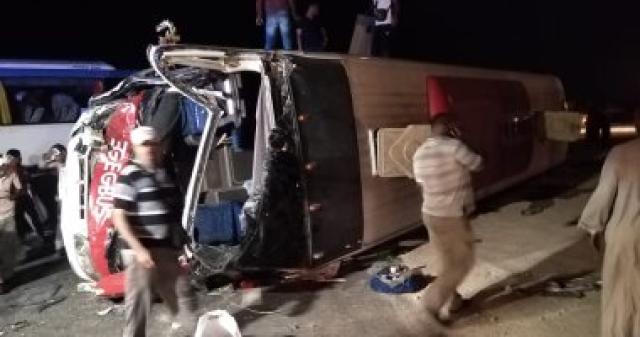 مصرع شخص وإصابة 25 آخرين فى حادث تصادم أتوبيسين بالصحراوى الشرقى بسوهاج.. صور