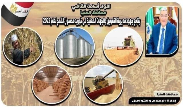 أعلن اللواء أسامة القاضي محافظ المنيا، أن الشون والصوامع الحكومية، تواصل استقبال محصول القمح لموسم حصاد 2022، وذلك عقب تحقيق المستهدف بنسبة 100%، حيث تم توريد 467178 طن و880 كيلو جرام حتى الان، وذلك من خلال 44 موقع تخزيني تم تجهيزها ضمن استعدادات المحافظة، لاستيعاب كافة الطاقة الإنتاجية من محصول القمح، مشيراً إلى أن إجمالي المساحة المنزرعة بالإقماح بنطاق المحافظة تبلغ 250 ألف فدان، وإجمالي المستهدف من أعمال التوريد يبلغ 450 ألف طن من الأقماح.