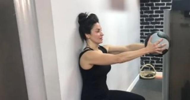 نيرمين الفقى فى صورتين من داخل الجيم من أجل ممارسة الرياضة