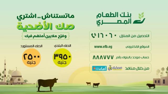 بدأ بنك الطعام المصري الاستعداد لاستقبال عيد الأضحى المبارك، بتوفير صكوك الأضاحي، ليتم توزيعها على المستحقين بمختلف محافظات الجمهورية بدءًا من أيام التشريق، وذلك من خلال برنامج صكوك الأضاحي، الذي يقوم المتبرع من خلاله بتوكيل البنك للإنابة عنه للذبح وتوزيع الأضحية على مدار العام لضمان وصولها إلى مستحقيها في كل محافظات مصر، طبقاً للفتوى الشرعية رقم 1732 لسنة 2006.
