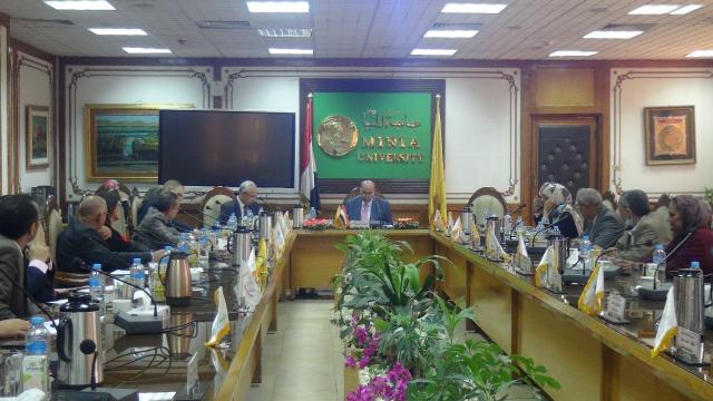 عقد مجلس جامعة المنيا اجتماعه الدوري، برئاسة الدكتور مصطفى عبد النبي عبد الرحمن رئيس الجامعة، وبحضور الدكتور عصام فرحات، نائب رئيس الجامعة لشئون التعليم والطلاب، وعمداء الكليات، ومدير مركز ضمان الجودة والاعتماد الجامعي، والمدير التنفيذي للمعلومات، والمستشار القانوني، وأمين عام الجامعة أعضاء المجلس.