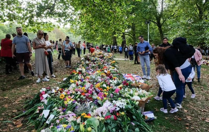 تم ترك عشرات الآلاف من الزهور لصاحبة الجلالة في الأيام التي تلت وفاتها، حيث شوهد الكثير من الناس في البكاء على مرأى من أمامهم.