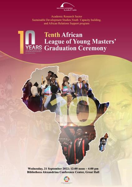 تنظم مكتبة الإسكندرية من خلال برنامج دراسات التنمية المستدامة وبناء قدرات الشباب ودعم العلاقات الإفريقية الاحتفالية السنوية العاشرة لتخرج الطلاب الأفارقة المشاركين في برنامج "شباب الصفوة الأفارقة"، وذلك الساعة الثانية عشرة صباح يوم الأربعاء الموافق 21 سبتمبر 2022 بالقاعة الكبرى بمكتبة الاسكندرية.