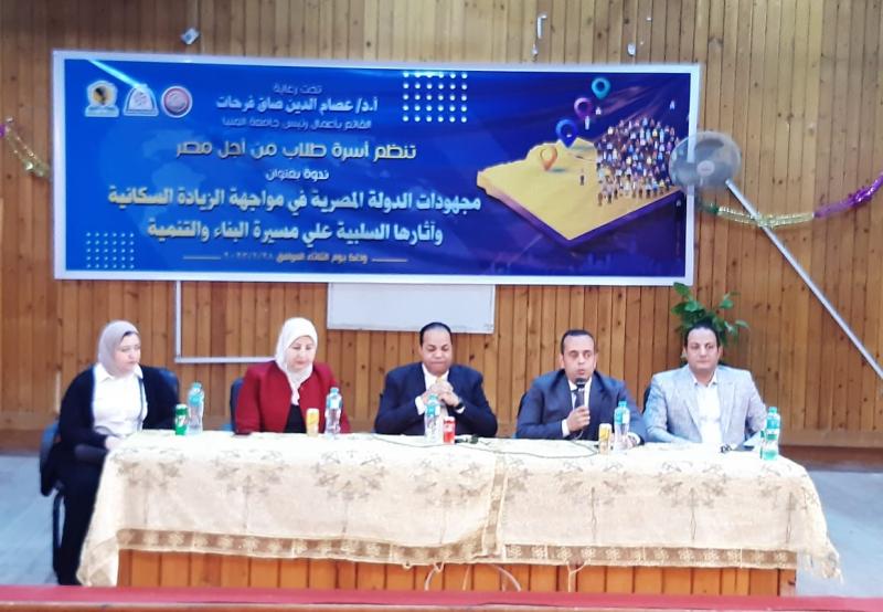 نظمت أسرة طلاب من أجل مصر بجامعة المنيا، برعاية من الدكتور عصام فرحات رئيس الجامعة، ندوتين تثقفيتين إحداهما بكلية الزراعة بعنوان "ترشيد استهلاك المياه والطاقة والسلع الغذائية لتوفير العملة الصعبة، والأخرى بكلية التربية للطفولة المبكرة عن "مجهودات الدولة المصرية في مواجهة الزيادة السكانية وآثارها السلبية على مسيرة البناء والتنمية" وتأتي الندوتان ضمن سلسة من الندوات التي تطلقها أسرة طلاب من أجل مصر، خلال الفصل الدراسي الثاني؛ لتوعية الطلاب
