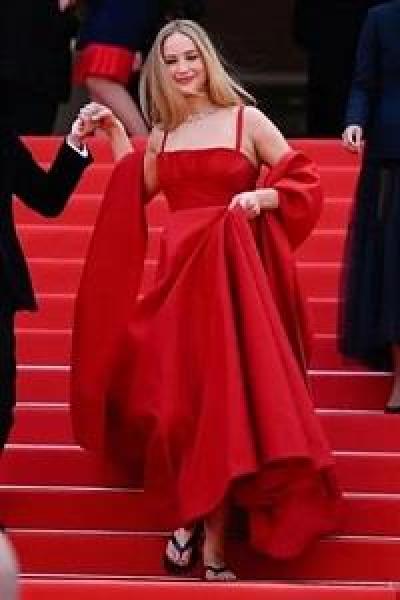 جينيفر لورانس بشبشب أسود علي السجادة الحمراء بكان السينمائي